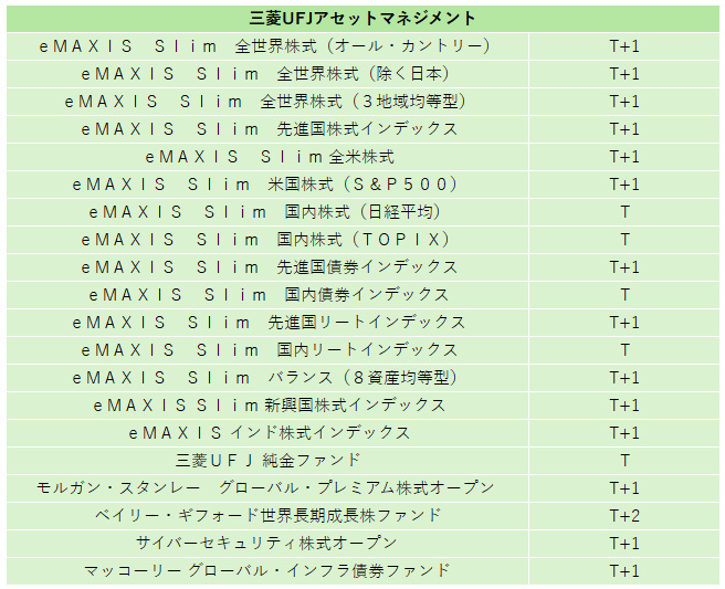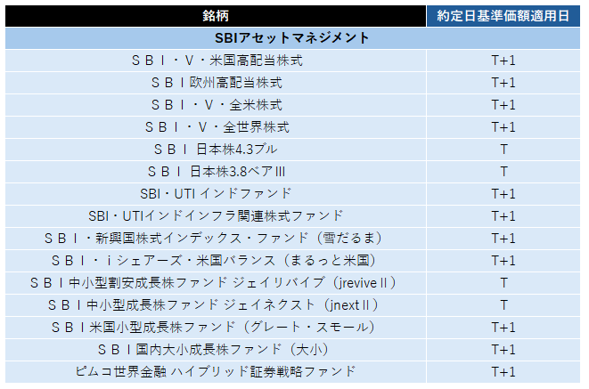 当社で取り扱いのある投資信託については、銘柄ごとに適用される約定基準価額の日付が異なります。